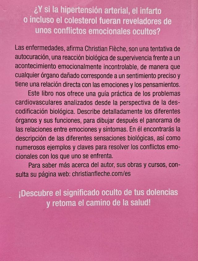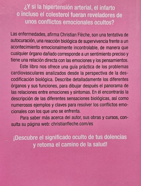 ¿Y si la hipertensión arterial, el infarto o incluso el colesterol fueran reveladores de unos conflictos emocionales ocultos? Las enfermedades, afirma Christian Flèche, son una tentativa de autocuración, una reacción biológica de supervivencia frente a un acontecimiento emocionalmente incontrolable, de manera que cualquier órgano dañado corresponde a un sentimiento preciso y tiene una relación directa con las emociones y los pensamientos. Este libro nos ofrece una guía práctica de los problemas cardiovasculares analizados desde la perspectiva de la descodificación biológica. Describe detalladamente los diferentes órganos y sus funciones, para dibujar después el panorama de las relaciones entre emociones y síntomas. En él encontrarás la descripción de las diferentes sensaciones biológicas, así como numerosos ejemplos y claves para resolver los conflictos emocionales con los que uno se enfrenta. ¡Descubre el significado oculto de tus dolencias y retoma el camino de la salud!
