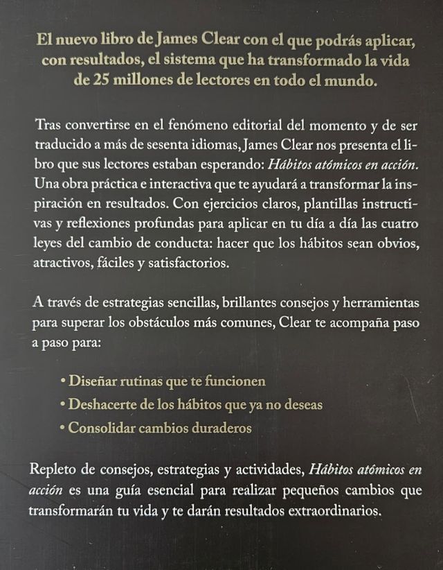 Tras convertirse en el fenómeno editorial del momento y traducirse a más de 60 lenguas, James Clear nos presenta el libro que sus lectores estaban esperando: Hábitos atómicos en acción. Una obra práctica e interactiva que te ayudará a transformar la inspiración en resultados. Con ejercicios claros, plantillas guiadas y reflexiones profundas para aplicar en tu día a día las cuatro leyes del cambio de conducta: hacer los hábitos obvios, atractivos, fáciles y satisfactorios.