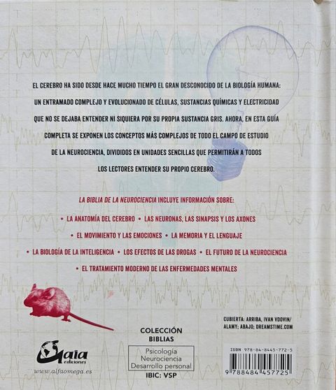 El cerebro ha sido desde hace mucho tiempo el gran desconocido de la biología humana: un entramado complejo y evolucionado de células, sustancias químicas y electricidad que no se dejaba entender ni siquiera por su propia sustancia gris. Ahora, en esta guía completa se exponen los conceptos más complejos de todo el campo de estudio de la neurociencia, divididos en unidades sencillas que permitirán a todos los lectores entender su propio cerebro. Se incluye información sobre: la anatomía del cerebro; las neuronas, las sinapsis y los axones; el movimiento y las emociones; la memoria y el lenguaje; la biología de la inteligencia; los efectos de las drogas; el futuro de la neurociencia; y el tratamiento moderno de las enfermedades mentales.