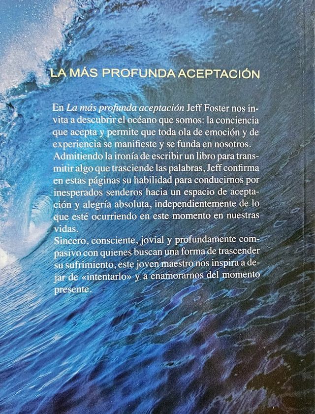 En La más profunda aceptación Jeff Foster nos invita a descubrir el océano que somos: la conciencia que acepta y permite que toda ola de emoción y de experiencia se manifieste y se funda en nosotros. Admitiendo la ironía de escribir un libro para transmitir algo que trasciende las palabras, Jeff confirma en estas páginas su habilidad para conducirnos por inesperados senderos hacia un espacio de aceptación y alegría absoluta, independientemente de lo que esté ocurriendo en este momento en nuestras vidas.