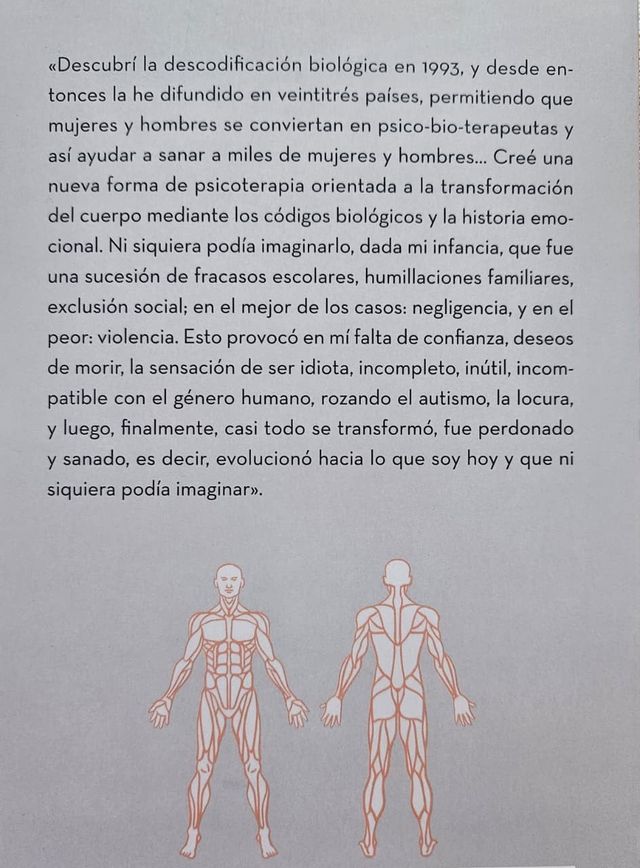“La descodificación biológica me revelo mi vida, ¡a ti puede revelarte la tuya! Creé la descodificación biológica en 1993, después la he difundido, en la actualidad, en veintitrés países, permitiendo a mujeres y hombres convertirse en psico-bio-terapeutas y así ayudar a sanar a miles de mujeres y de hombres, he creado una nueva forma de psicoterapia orientada hacia la transformación del cuerpo, pasando por los códigos biológicos y la historia emocional. Yo ni siquiera podía imaginarlo, hasta tal punto fue mi infancia una sucesión de fracasos escolares, de humillaciones familiares, de ser dejado de lado socialmente muchas veces; en el mejor de los casos, de negligencia, y en el peor, de múltiples violencias. Esto provocó en mi falta de confianza, deseos de morir, sensación de ser idiota, de estar incompleto, de ser inútil, incompatible con el género humano, rayano con la locura; y después, finalmente, todo, o casi, se transformó, se perdonó y quedo sanado, es decir, evolucionó hacia lo que soy hoy y de lo que no podía tener idea”.